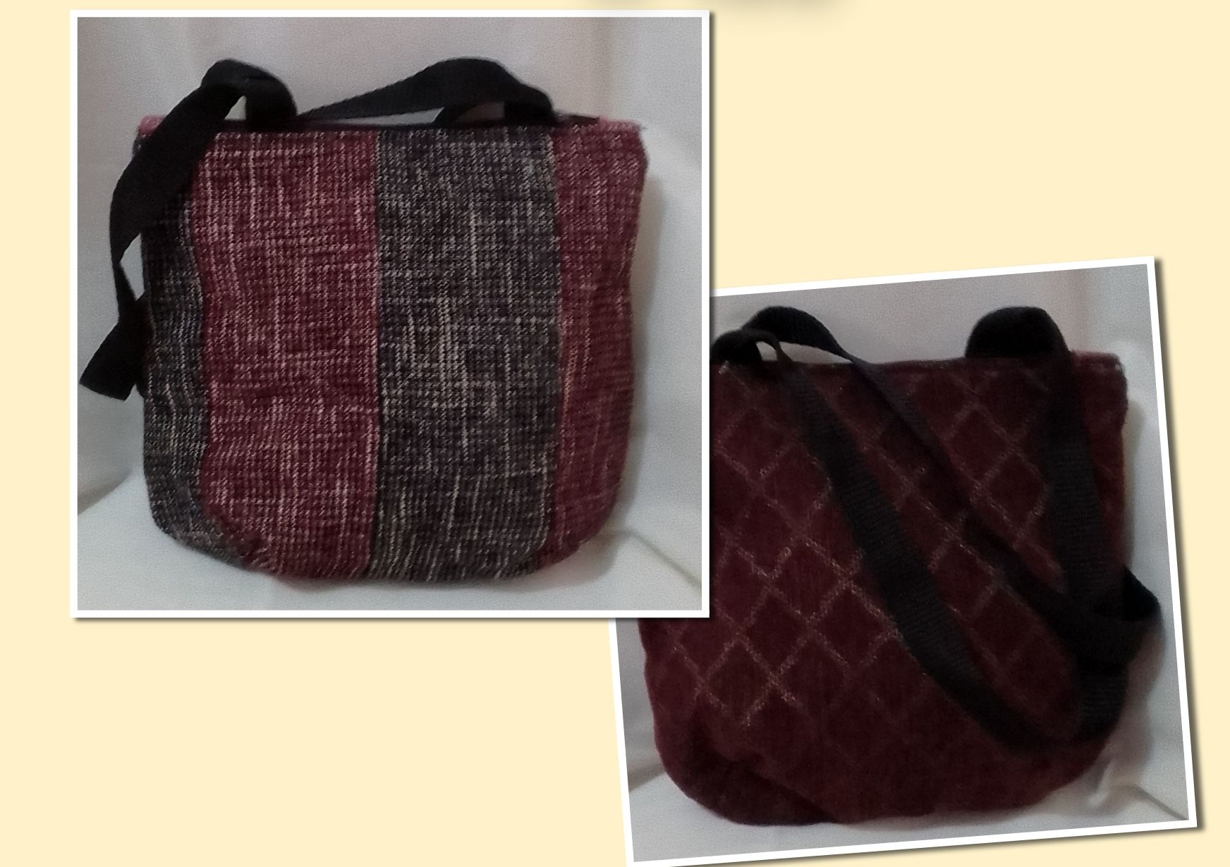 JR: QUILTED MAROEN AND BLACK SLING BAG